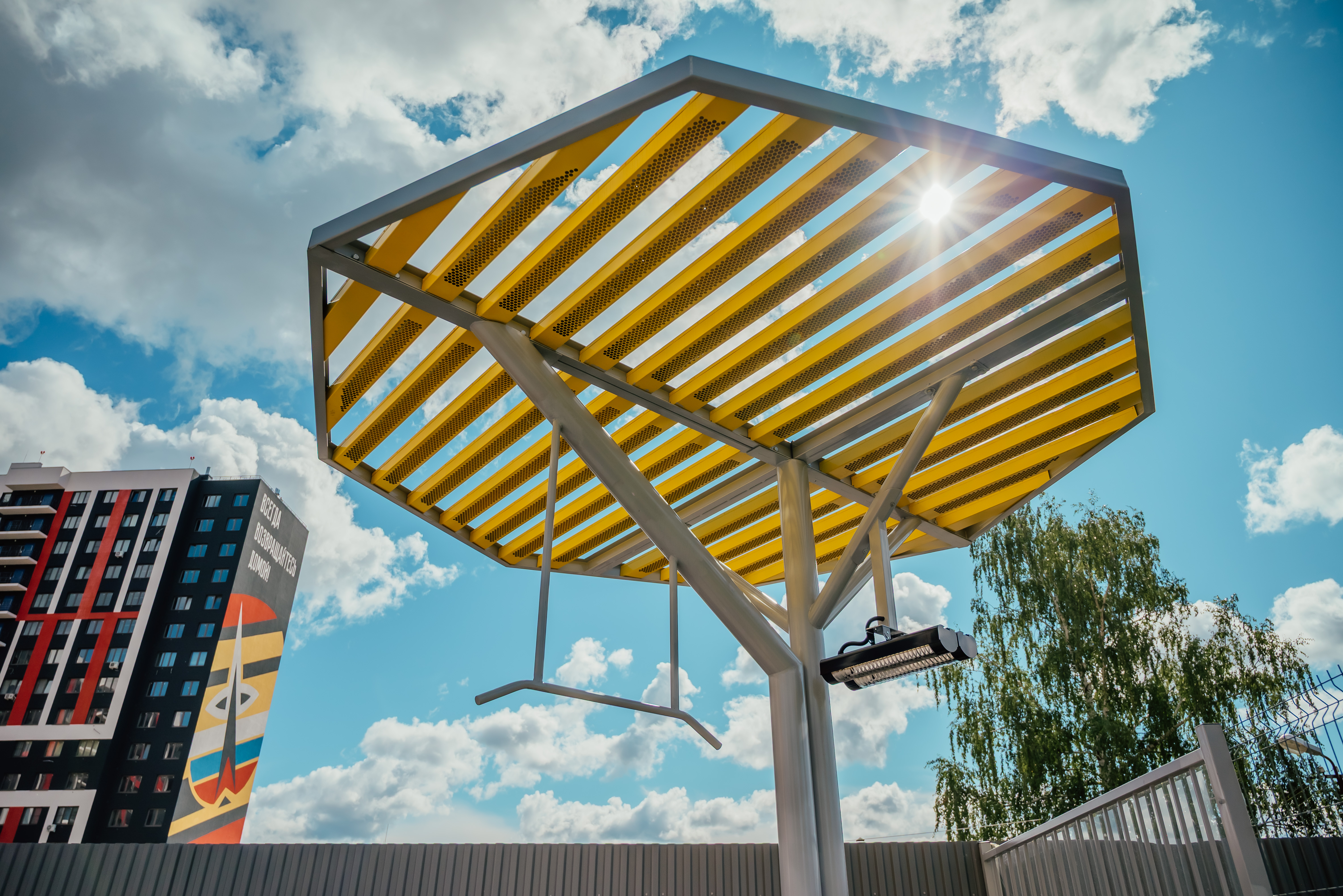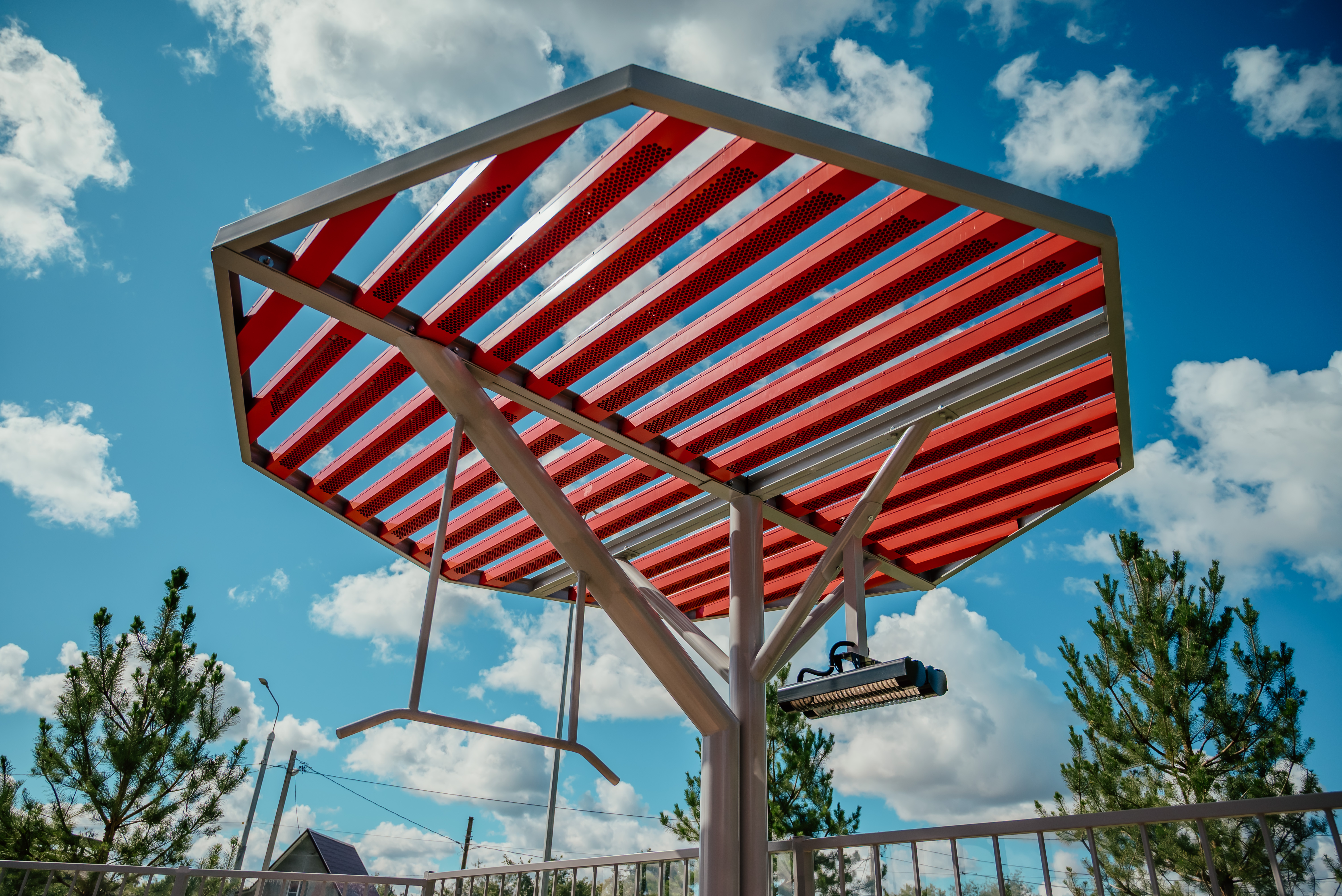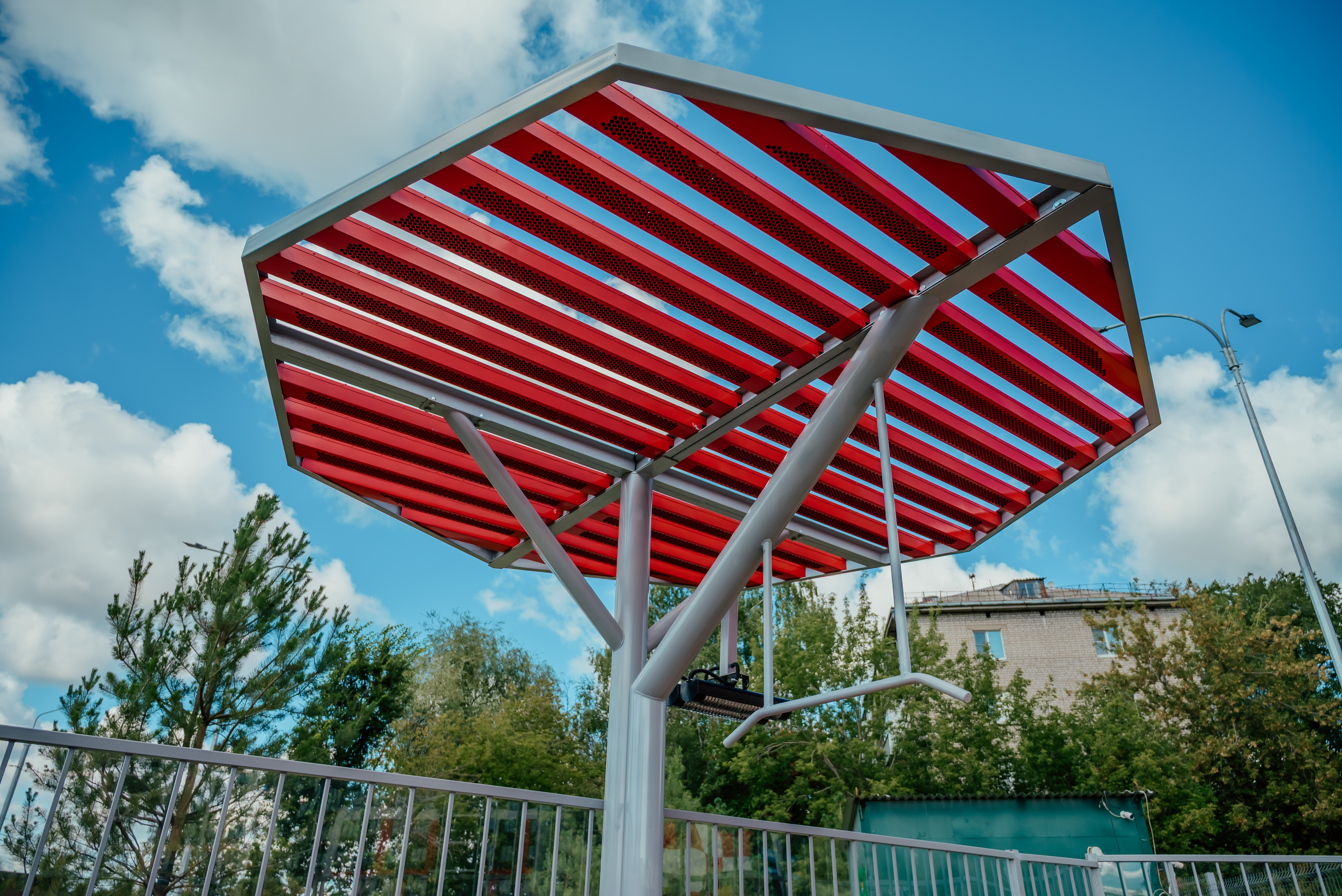 Навес предназначен для обустройства любых видов общественных пространств: скверов, парковых зон, детских игровых площадок, городских зон отдыха, территорий жилых комплексов.
