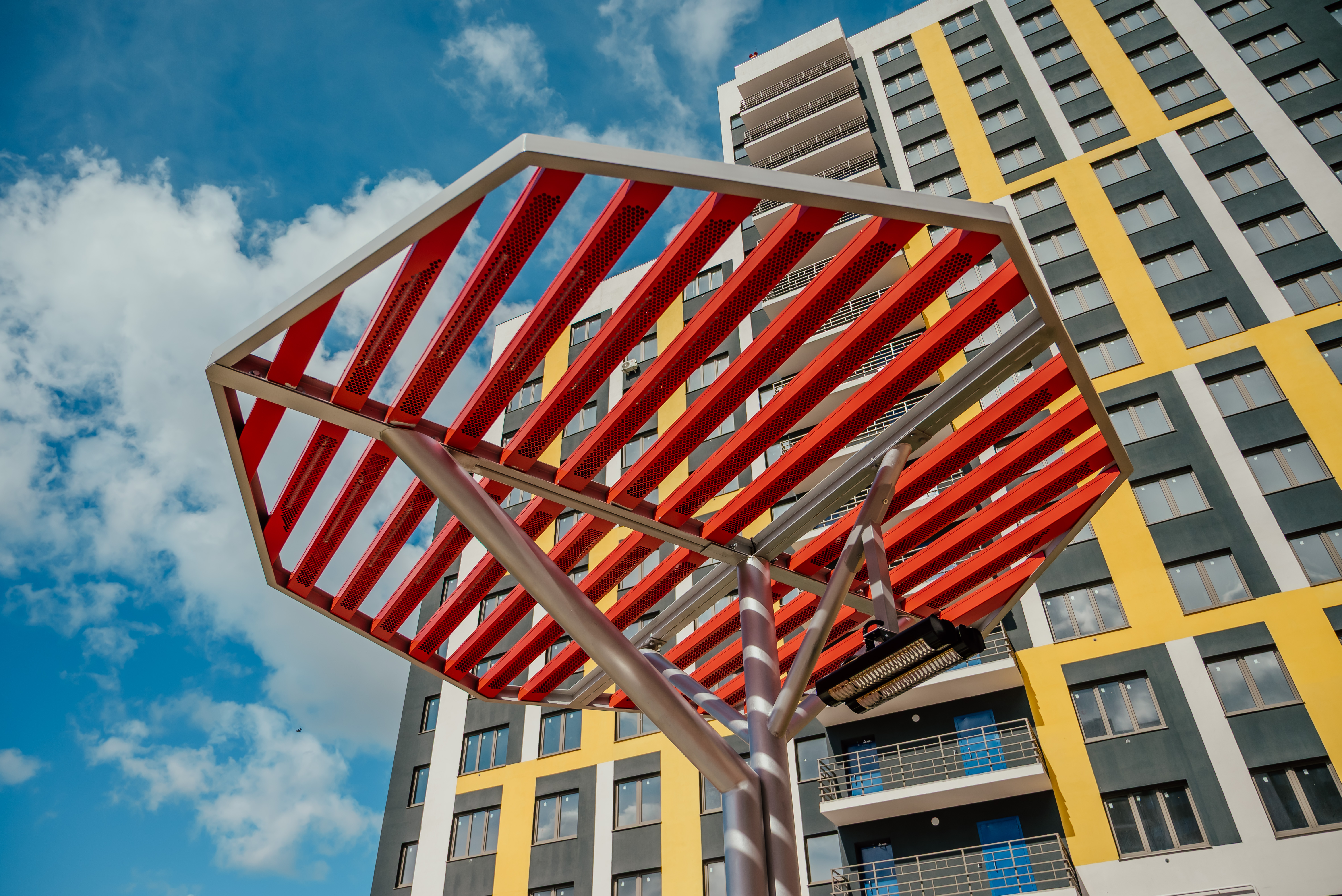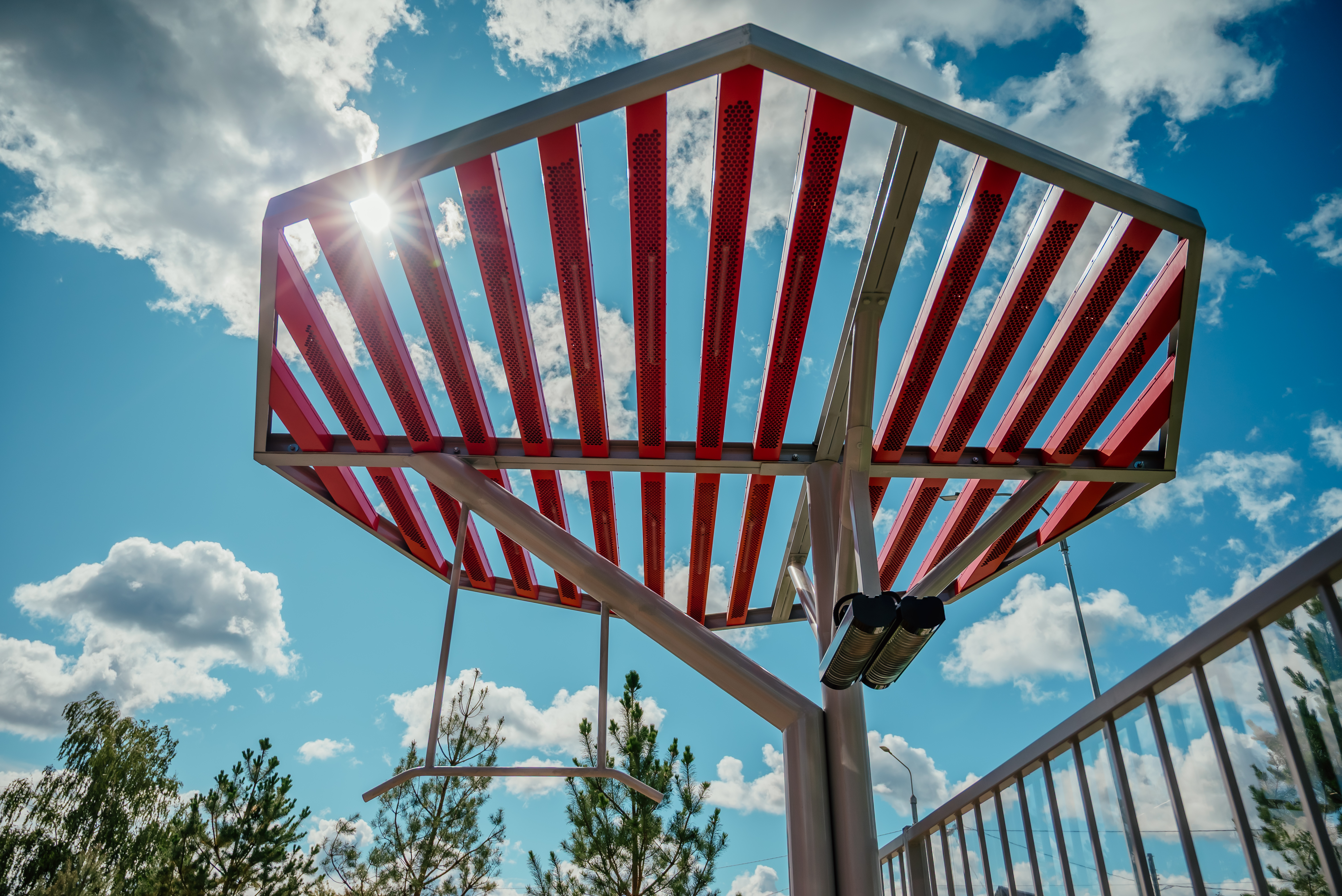 - Крыша с лазерной резкой не только защищает от солнца, но и создает интересные световые узоры на земле, а дизайн элементов позволяет интегрировать их в любые городские пространства.